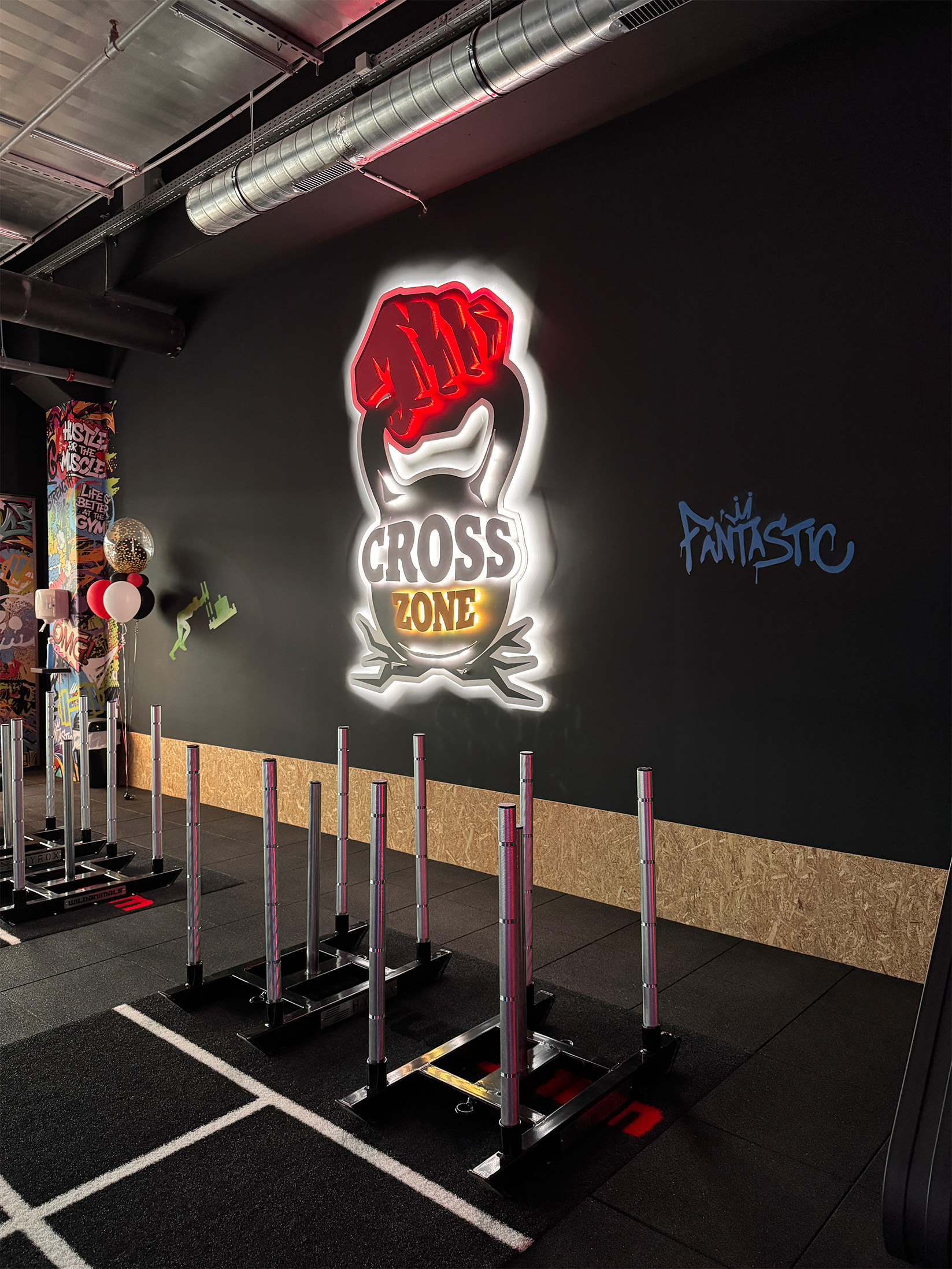 A Cross Zone prémium felszereléseket és karakteres dizájnt kapott, hogy a tartalom és a környezet egyaránt motiváljon legjobb önmagad megvalósítására.Hivatalos HYROX Training Club minősítése nemcsak az amatőr sportolók, de a profi versenyzők számára is garanciát nyújt a legmagasabb szintű edzéskörülményekre.